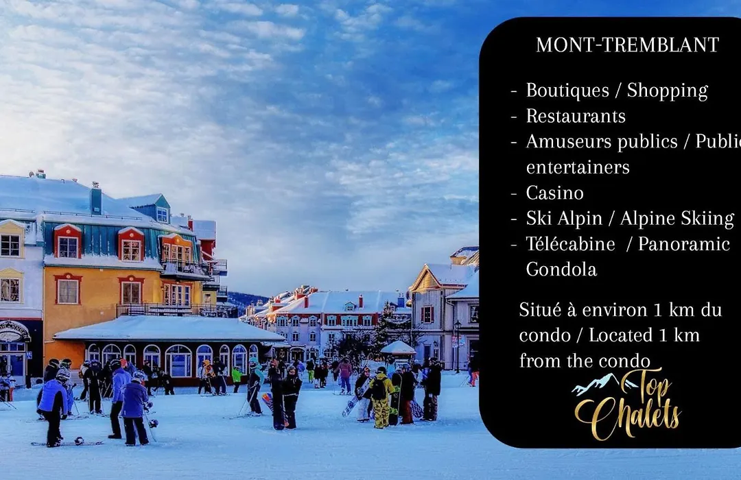 从Huge Condo In Front Of Tremblant Ski Resort到蒙特朗布朗活动中心步行只需17分钟,客人还可享受院子景致. 该别墅共有2间卧室,同时配备露台,咖啡/茶设施 和高速互联网.